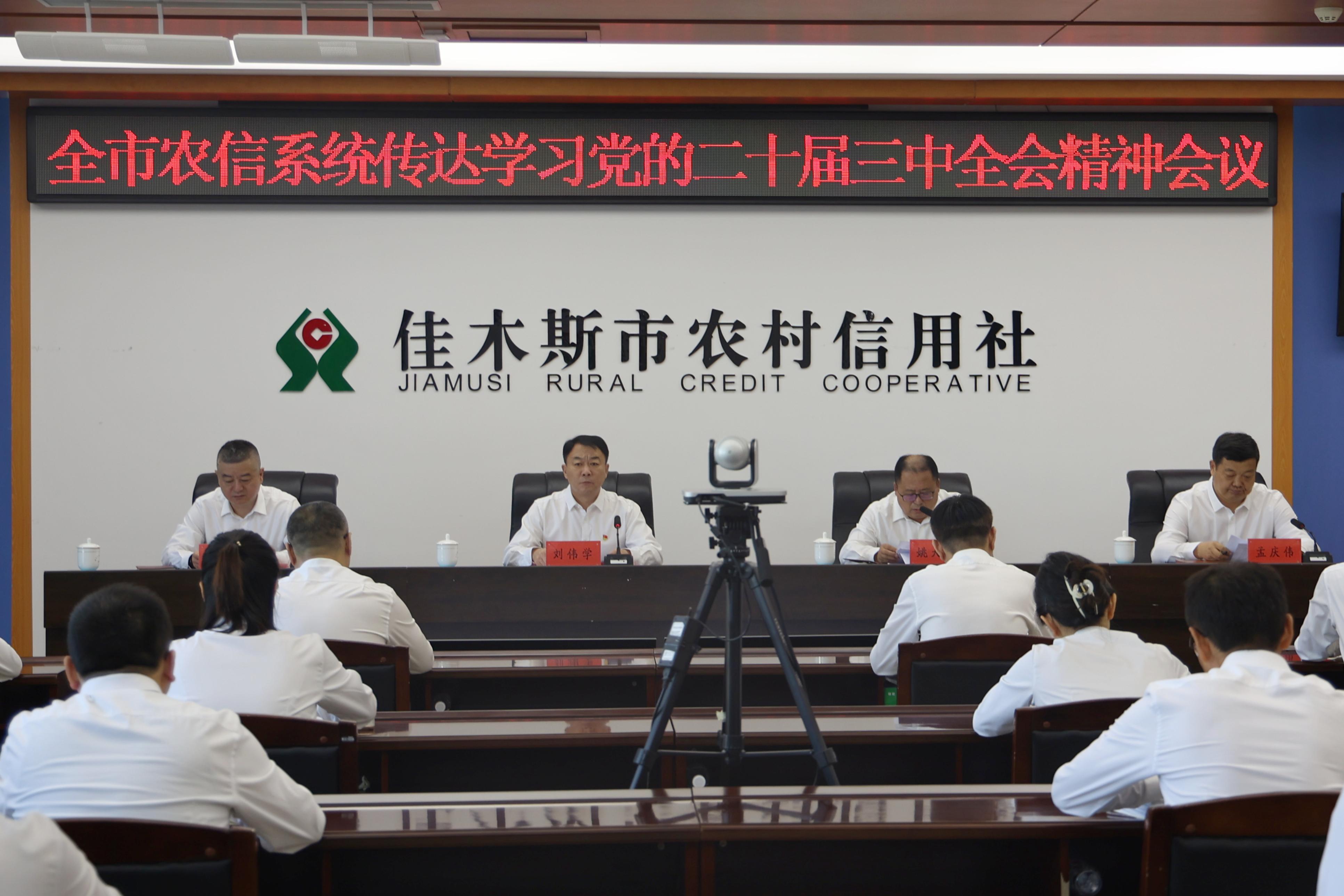 8月27日,佳木斯市联社召开会议,传达学习党的二十届三中全会精神,部署贯彻落实工作。市联社党委书记刘伟学讲话,市联社党委副书记姚大本主持会议。