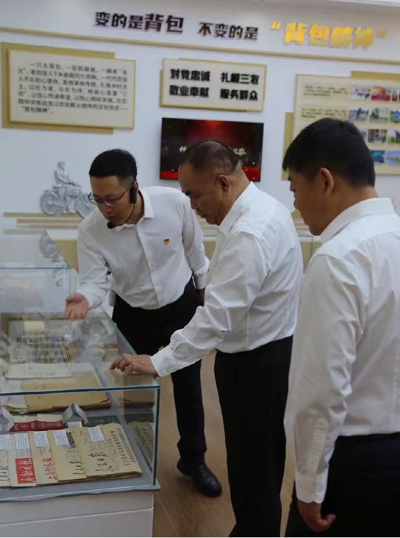 在历史文化展室,大家怀着崇敬的心情,倾听讲解员详述农信社发展历程和优秀先辈代表事迹,仔细观看了历史物件和历史图片,深入了解老一辈农信人不畏艰难、艰苦奋斗、勇担重任的“三水”精神和“背包”精神。一件件珍贵的历史物件,一幅幅斑驳的历史图片,一桩桩感人的奋斗故事,都向党员干部们生动展现了先辈们为了农信事业发展无私奉献的伟大情怀,让在场的每一位党员干部都深受触动,深刻体会到了农信事业从苦难走向辉煌的不易。